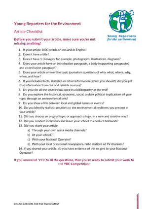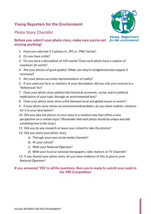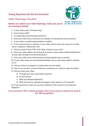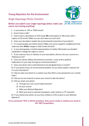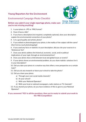 You’ve been working for weeks preparing your photo, video or article for the YRE competition but before you submit check out these checklists to make sure you haven’t missed anything important!
